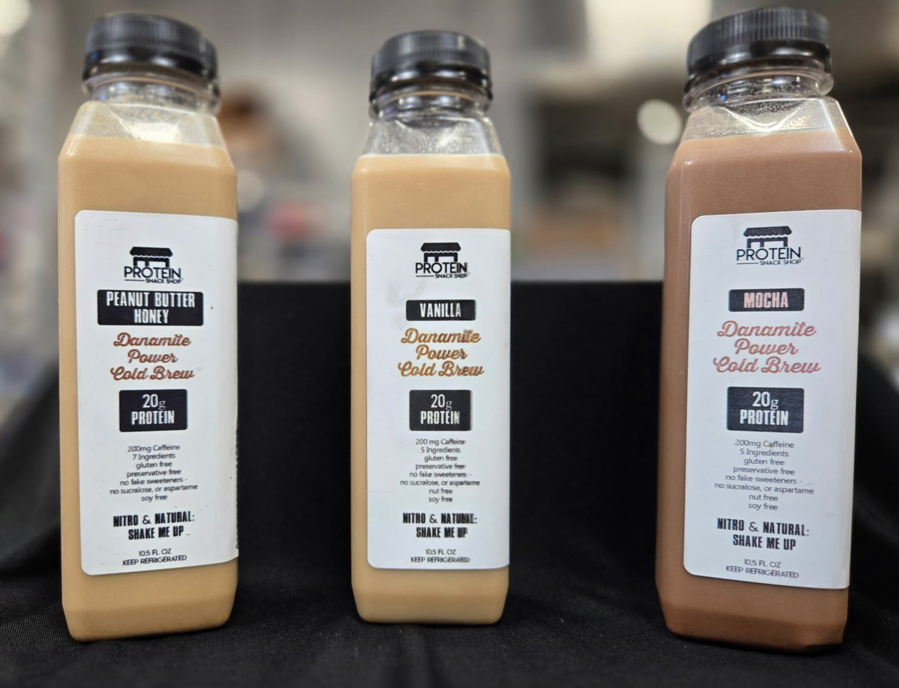 Fuel your day with the perfect mix of clean energy, creamy flavor, and powerful protein — all in one pack. The Danamite Protein Cold Brew Variety Pack includes 2 bottles each of Vanilla, Mocha, and Peanut Butter Honey, giving you a taste of every favorite. Each smooth, nitro-infused cold brew delivers 20g of grass-fed whey protein and 200mg of caffeine — pure, sustained energy without the crash.