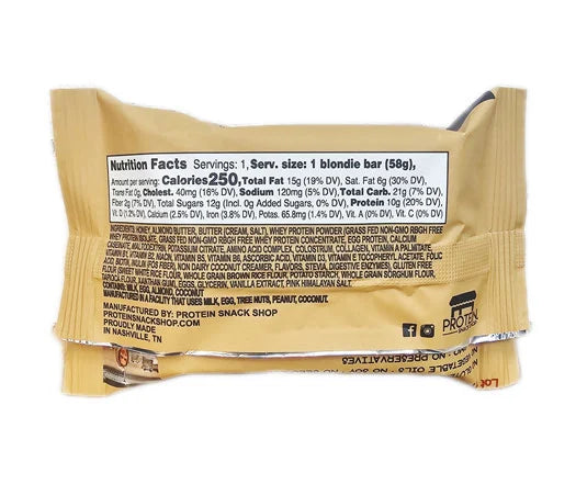 Nutritional Information (Per Serving – 1 Blondie Bar, 58g):